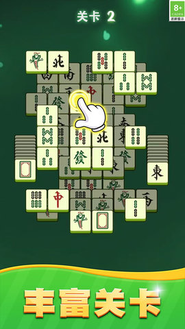 麻将快乐消除游戏是一款另类有趣的休闲游戏,玩家可以体验到不同于传统麻将的消除玩法。玩家需要点击屏幕中间的麻将,将其放到下方的储存栏中。当有三个相同的麻将被放进储存栏时,即可完成一次消除,并腾出空位供后续操作。玩家需要通过合理的操作和策略,消除屏幕中间的所有麻将,才能顺利通关。
