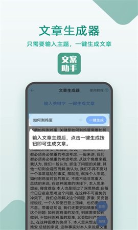 豆拍文案是一款手机端的文案生成工具,能够根据用户输入的关键词或主题,快速生成多种风格的文案内容,整合了丰富的词库和句式模板,支持对生成结果进行二次编辑和调整,将满意的文案直接复制使用或保存到本地收藏夹。