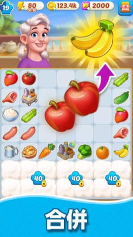 1、合并玩法十分简单,玩家只需将相同类型的食材拖动到一起,便能轻松合成出更高级的原料,适合各个年龄段的玩家。
