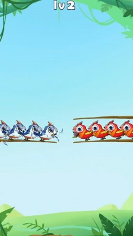 在《百鸟齐飞》中,玩家的主要任务是通过移动小鸟来完成消除。点击选中一只小鸟后,玩家可以将其移动到其他树枝上,前提是目标树枝上没有其他小鸟阻挡。为了通关,玩家需要将同种颜色的小鸟移动到同一树枝上,凑齐四只相同的小鸟就能消除并飞走,清空所有小鸟即可完成该关卡。