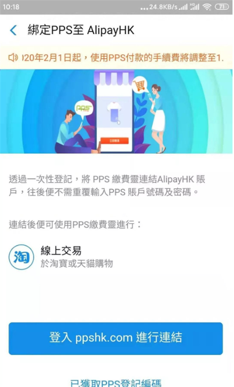 PPS 缴费灵服务也可以绑定 AlipayHK,用于日常账单支付。