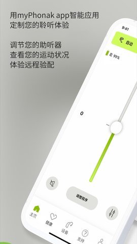 一款个性化听觉体验和跟踪健康数据的应用。新的 myPhonak 配备了改进功能和全新设计,尽可能提升您的听觉体验并按需定制。除了跟踪您的健康数据外,myPhonak 还为您的峰力助听器提供增强型听力控制和个性化选项。