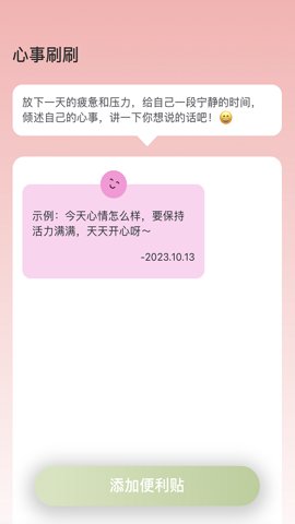 在应用中找到心事刷刷功能,点击后即可添加便利贴,输入您的心情或想法,保存后即可随时查看。