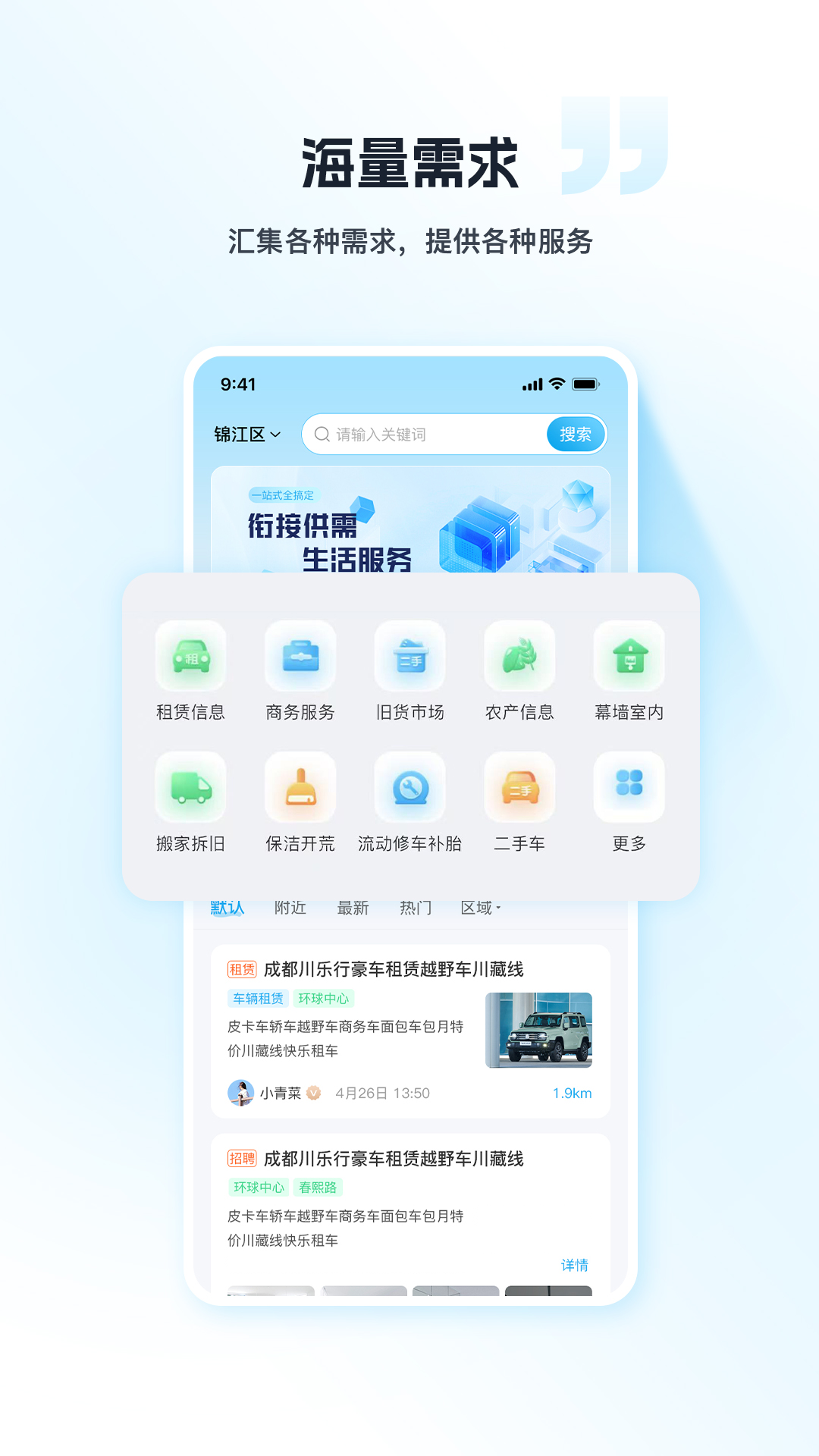 1. 求职招聘:发布和浏览各类求职信息,轻松找到合适的工作机会,企业也能找到合适的人才。