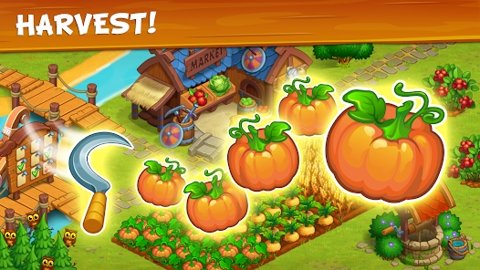 1、玩家可以通过收割不同的作物,获得金币和经验值,帮助农场不断升级,解锁更多的功能和区域。