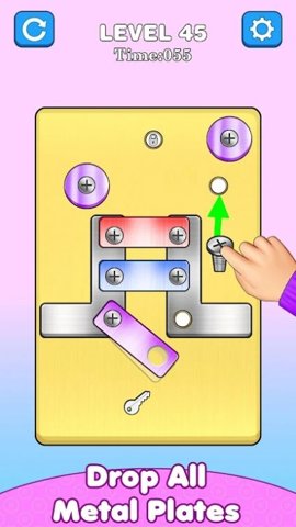 1、游戏提供了多种形状和大小的螺丝和螺母,你需要将们正确地匹配起来,完成每个难度逐渐加大的关卡。