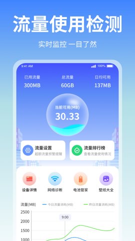 应用提供详细的流量数据分析,帮助用户全面了解流量使用情况,便于进行合理的流量规划和管理。
