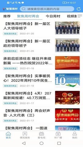 2、智慧周村提供了丰富的音视频资源,随时观看电视节目和收听电台广播,享受多元化的娱乐体验。