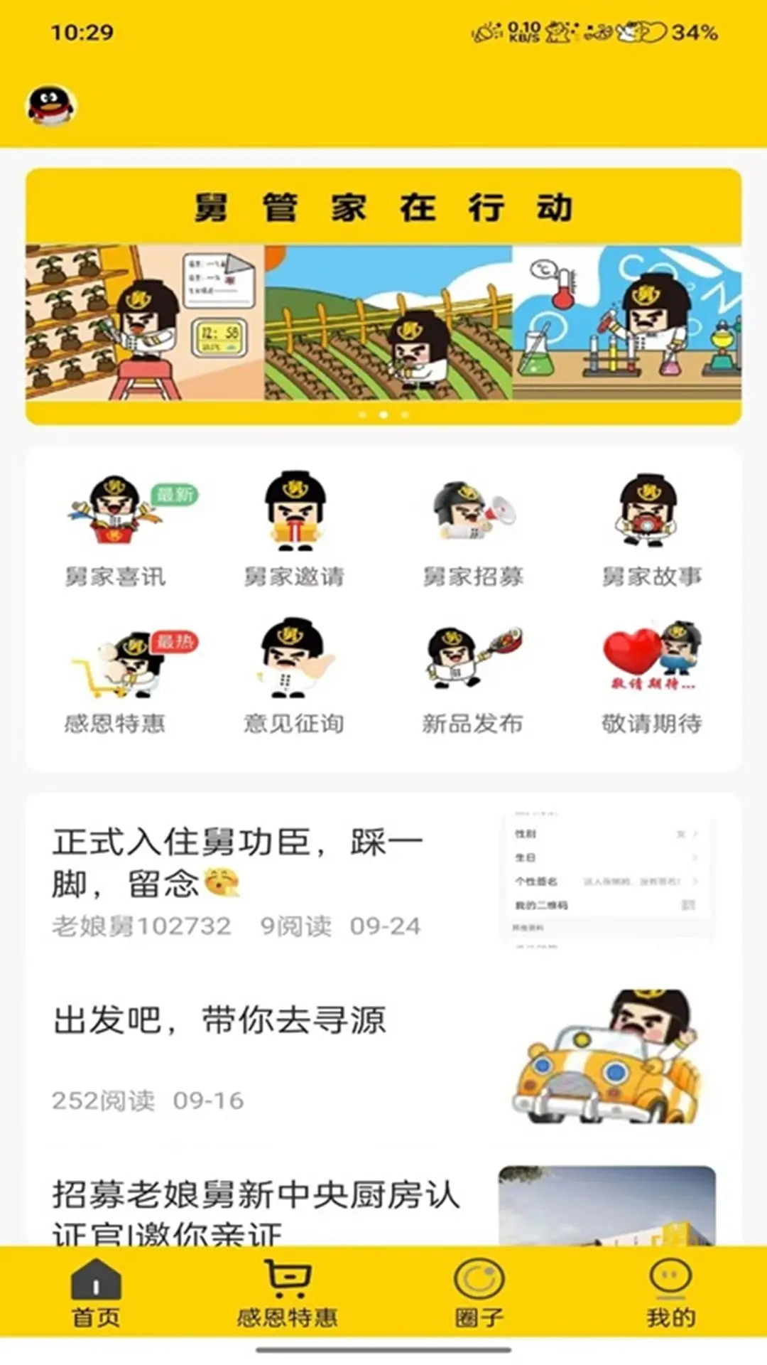 1. 下载并安装舅功臣APP,打开应用后会看到一个简洁明了的首页,展示最新的活动和信息。