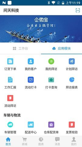 3、企微宝:员工圈、拜访地图、员工圈、易办事、审批、考勤、拜访查询、订货下单等功能。
