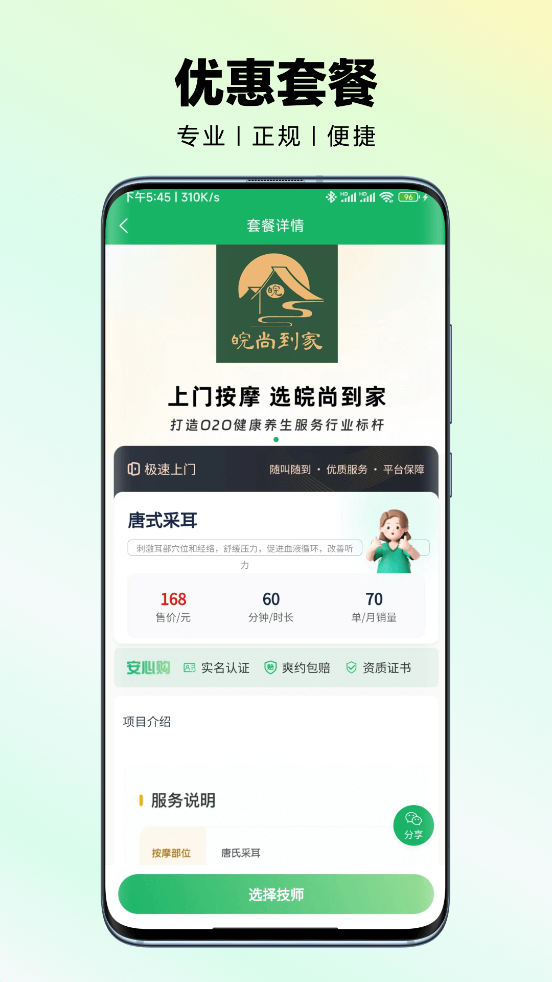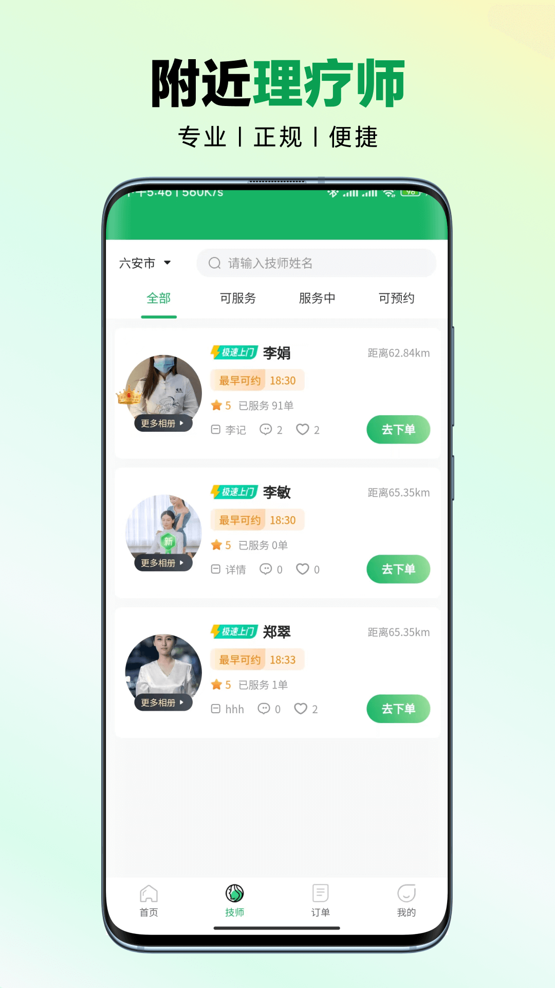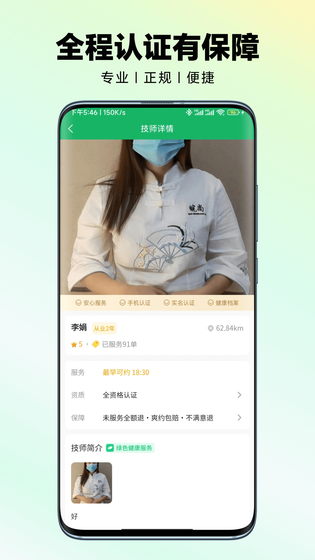 技师信息查看:查看上门技师的详细信息,包括资质、经验等,以便做出更合适的选择。