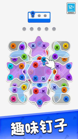 钉钉钉游戏是一款休闲创意的益智解谜游戏,让玩家在全新的螺丝拼图世界中体验乐趣。在这个彩色的螺丝世界里,玩家需要根据屏幕上方彩色盒子的颜色,点击对应颜色的钉子,将它们拆下并收纳进盒子中,完成所有颜色盒子的收集即可过关。游戏中不仅考验玩家的操作速度,还需要动用思考能力,合理安排拆卸顺序,避免混乱和错误操作,增加了游戏的挑战性和乐趣。