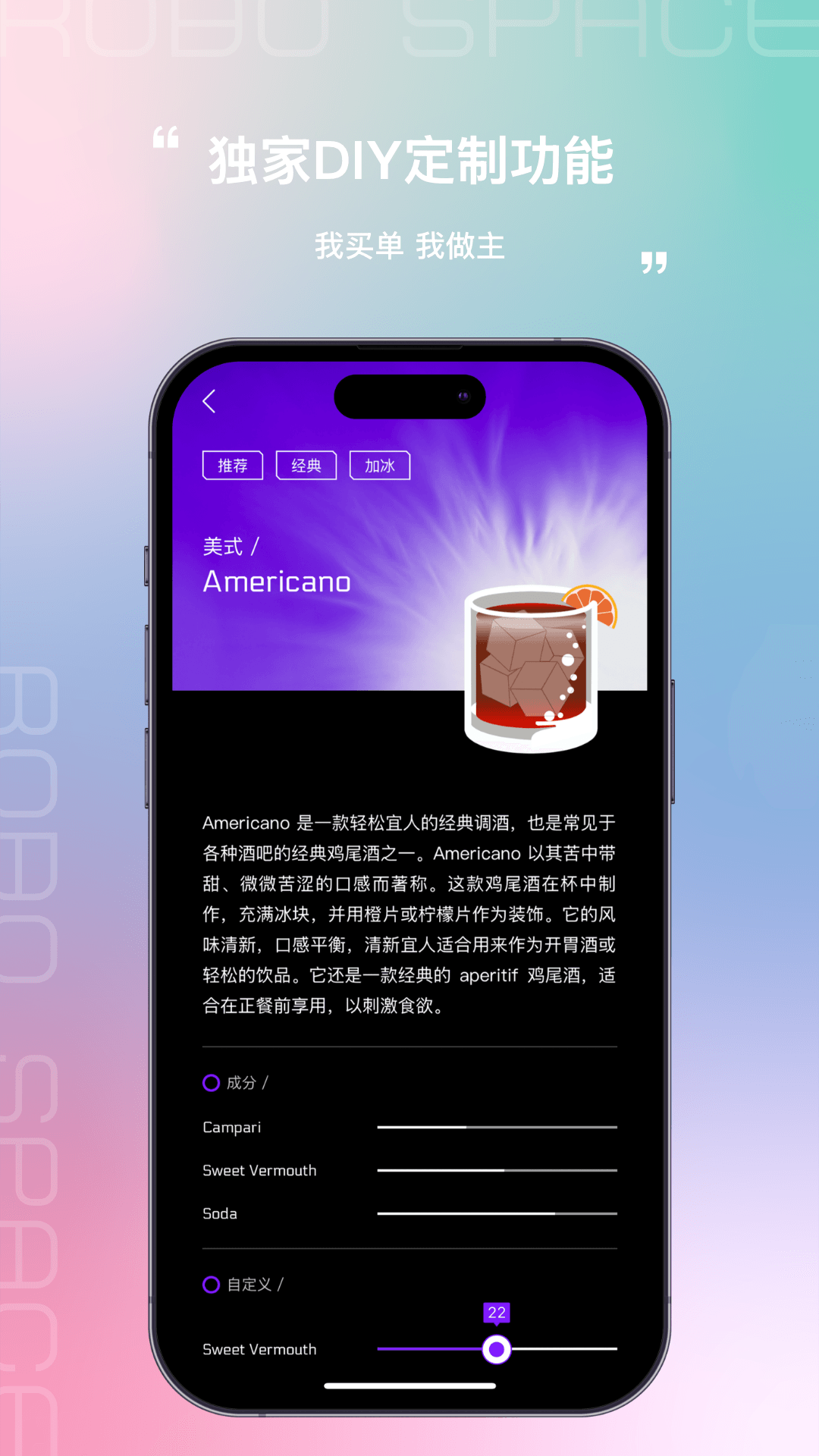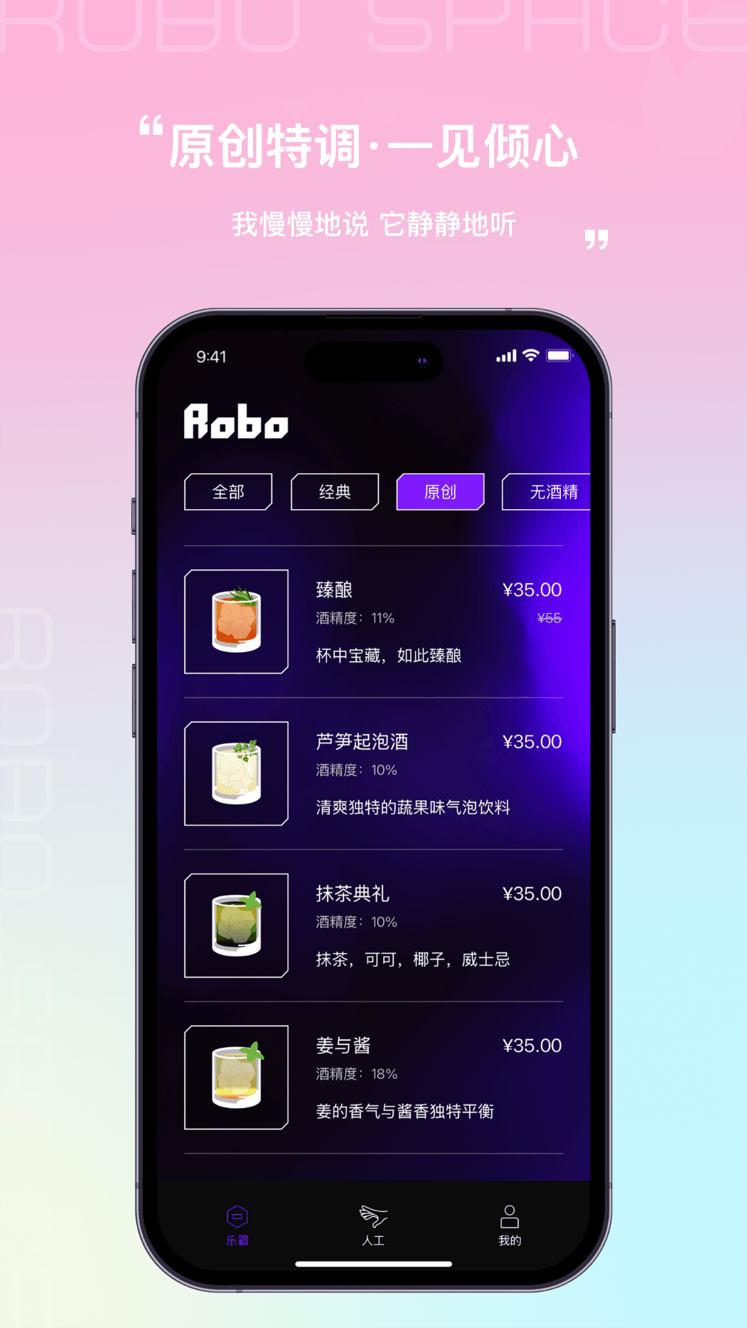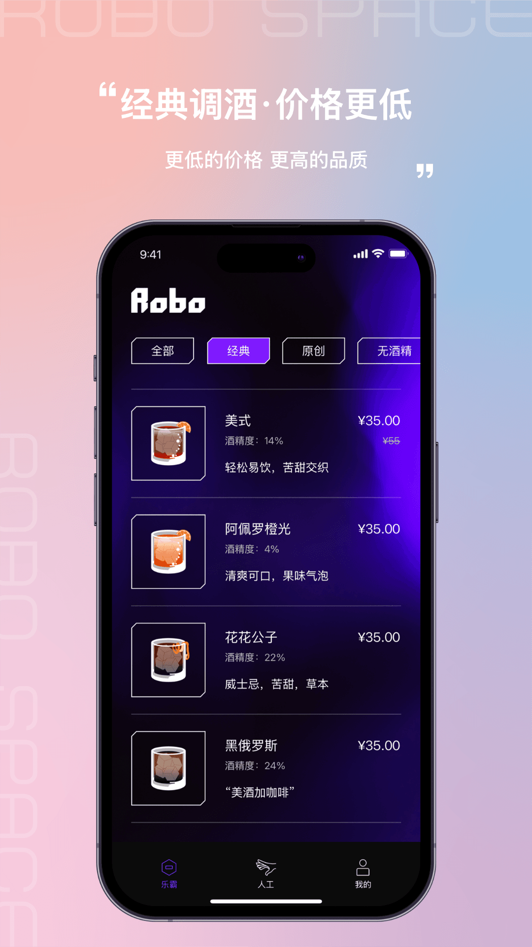 多样化酒品选择:Robo Space提供丰富的酒品库,从经典鸡尾酒到创新饮品,应有尽有,满足各种口味需求。