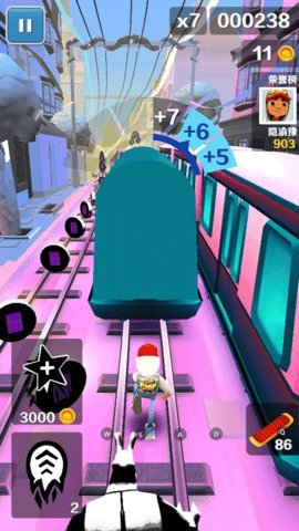 1、与传统地铁跑酷版本相比,这款游戏在视觉风格上进行了大胆的创新,粉色元素和酷炫的金币设计让玩家耳目一新。