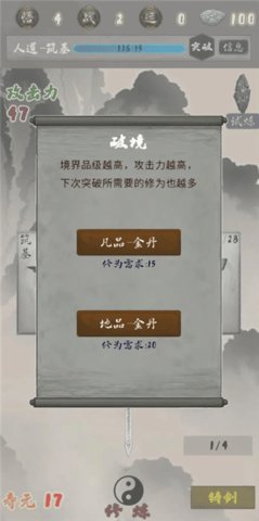 3、多样的抉择影响着角色的发展,玩家可以选择外出打工获取修炼资源,或者通过其他途径积累财富,每一个选择都将深刻改变你的修仙之路。