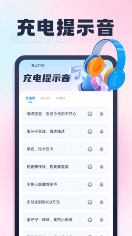 5、丰富的提示音选择,在应用内轻松设置喜欢的充电音效,增加充电的乐趣。