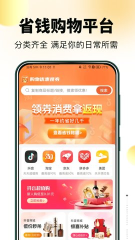 半点购app是一款全新的在线购物应用,专为喜欢网购的用户设计。能从美团、京东、抖音等多个平台获取优惠券,还能提供丰富的特价商品选择。在这里,轻松找到心仪的商品,享受各种意外的奖励和团体活动。通过提前领取购物券,用户在结算时能有效降低支付成本,真正做到省钱又省心。