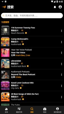 Audiomack中文版是一款优质好用的音乐播放器软件,为用户提供便捷的音乐体验。允许用户试听各种音乐,还支持多种搜索方式,通过歌曲名称、歌词甚至是自己听歌的方式来快速找到想要的曲目,极大地方便了爱好音乐的朋友们。
