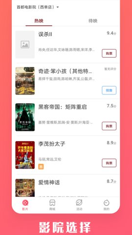 2、覆盖全国近百家影院,在平台上选择心仪的影片,轻松与心中的英雄相遇,享受电影带来的快乐。
