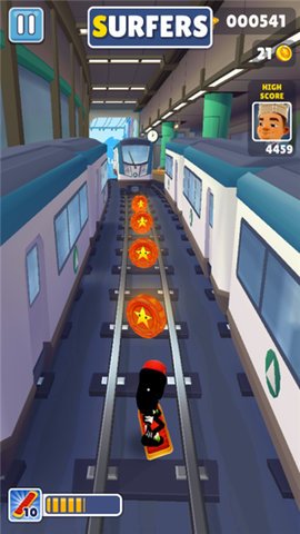 1、玩家需要通过滑动屏幕来控制Jake的移动,左右闪避列车和障碍物。这个操作简单易懂,但需要玩家的反应速度和判断力。
