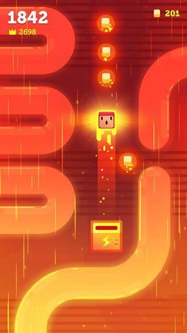 1、玩家需要通过点击屏幕来控制小吐士的弹跳,越高的跳跃能让你越快地接近目标,但同时也要小心周围的火焰和高温表面。