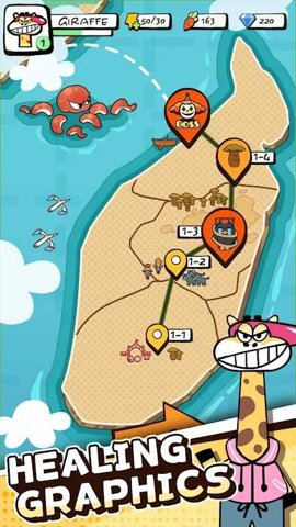 2、通过合并和升级道具,玩家可以不断提升长颈鹿的能力,增强战斗力,挑战更强的敌人。