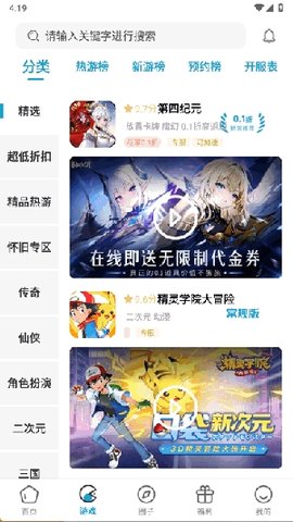 2、在游戏板块中,用户能够按照游戏分类选择自己喜欢的游戏,轻松找到合适的娱乐内容。