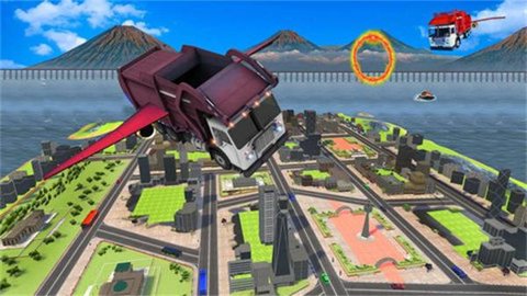 1、玩家可以在空中自由飞行,控制垃圾车的起飞和降落,挑战高难度的飞行技巧。