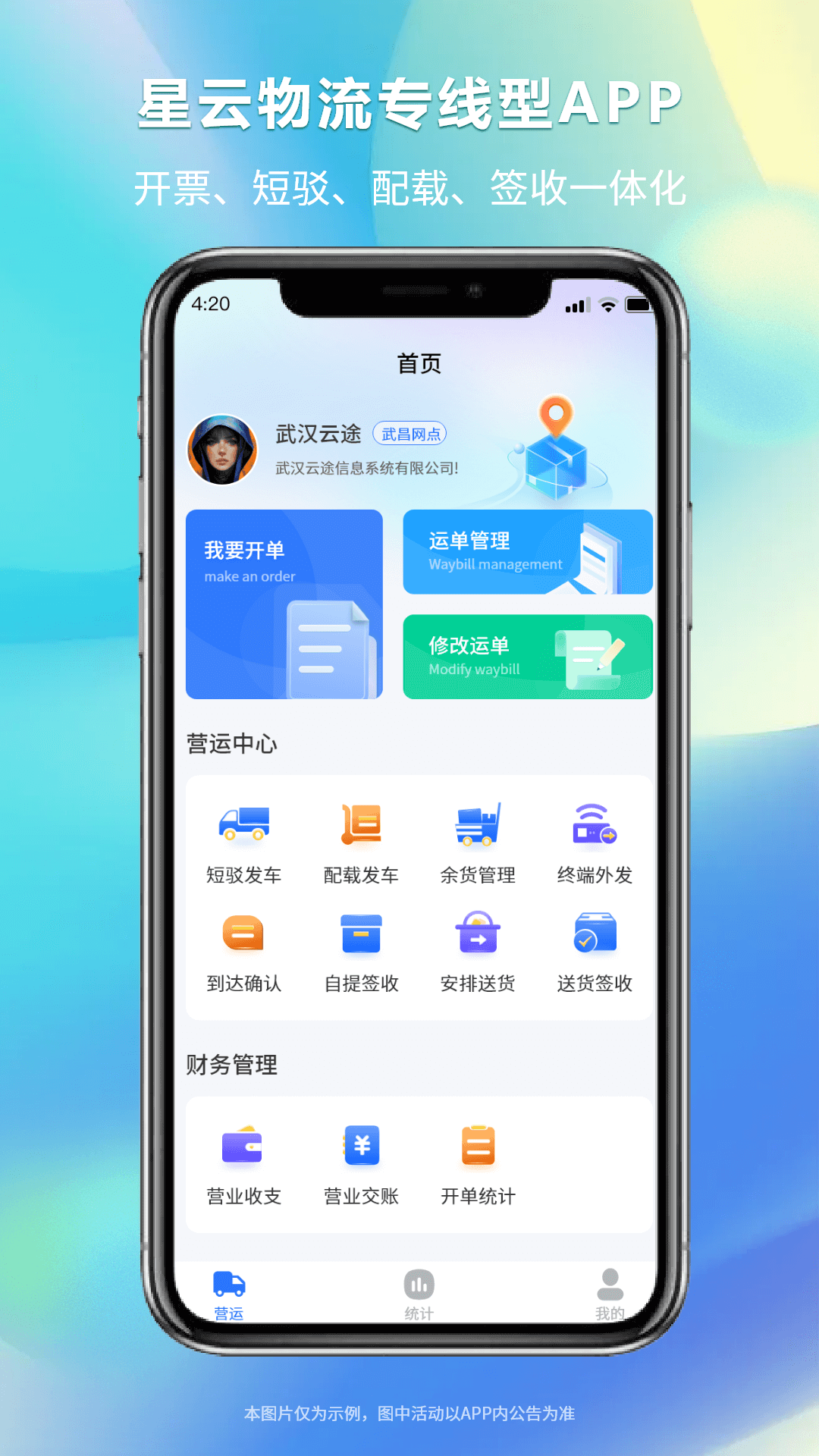 星云物流专线型APP版是一款专为物流行业设计的高效管理工具,帮助物流公司实现全面的业务流程管理。它适合各类物流公司,尤其是拥有多个营业部或分公司的企业。用户能够轻松处理运单开单、发车、到达确认等日常工作,显著提升工作效率,减少人工错误,确保物流运作的顺畅与高效。
