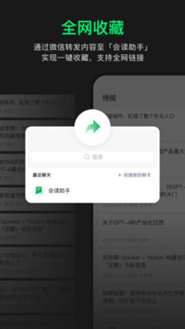 分享新闻文章、个人评论或任何在会读中发现的有趣内容,分享方式包括短信、社交媒体和邮件等。