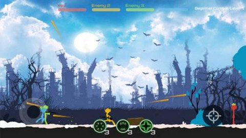 3、虚拟摇杆操作简单易学,玩家可以轻松操控火柴人进行多种攻击和动作,享受流畅的游戏体验。