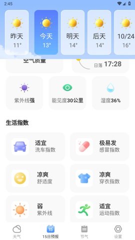 2、提供详细的天气安全健康指标,帮助用户合理安排日常活动和运动,确保健康生活。