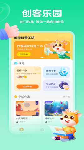3、编程科普工坊内设有作品社区和拓展训练场,提供了观看他人作品和进行自主创作练习的多样化场景。
