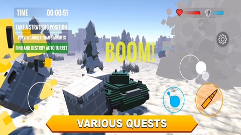 在《坦克世界战斗模拟器》中,玩家将化身为一名坦克指挥官,驾驶各种强大的坦克在战场上展开激烈的战斗。游戏的环境设计多样,玩家需要在复杂的地形中灵活应对,调整坦克的角度进行精准射击。消灭敌军、摧毁敌方建筑,获取积分和奖励是你在战斗中的主要目标。每场战斗都是一次全新的冒险,敌人会不断变化,战场环境也会随之而变,给你带来无尽的挑战和乐趣。