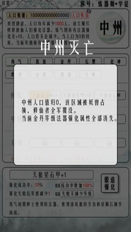 3、九州大地的妖魔侵袭为游戏增添了紧迫感,玩家需要在有限的时间内做出最佳决策,帮助修仙者抵挡威胁。