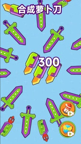 4、游戏中有多种胡萝卜刀类型,玩家不仅要合成,还需要收集不同类型的刀具,增加游戏的多样性和趣味性。
