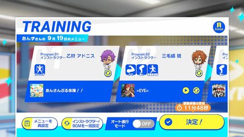 偶像梦幻祭Training是一款养成经营游戏,玩家可以选择自己心仪的虚拟偶像、学长或老师角色,作为健身教练进行互动训练。游戏结合了健身与偶像文化,鼓励玩家在享受音乐的同时,提升自己的身体素质,达到健身目标。通过与偶像们的互动,玩家不仅能够锻炼身体,还能感受到偶像带来的正能量和激励,形成一种独特的健身体验。