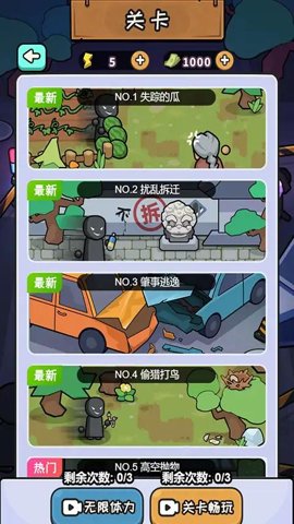在《破案我最牛》中,玩家将化身为一名机智的侦探,深入各种离奇的案件,挑战自己的推理能力。每个关卡都充满了悬疑和挑战,玩家需要仔细观察周围的环境,寻找隐藏的线索,推理出案件的真相。游戏中有许多奇葩的案件,比如老王的瓜神秘失踪、居民楼的奇怪字迹和十字路口的车祸等,每一个案件都等待着你去解开谜团。通过细致的逻辑推理和敏锐的观察力,你将逐步揭开事件背后的真相,感受侦探破案的快感。