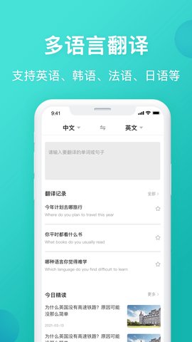 4、支持多语言互译:除了英汉翻译,支持其他主流语言的互译,满足全球用户的交流需求。