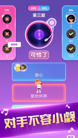 1、猜歌夺宝采用实时竞技模式,玩家需要与其他玩家同台竞技,争夺歌曲的演唱权。
