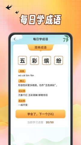1、这款应用以有趣的方式传授成语知识,通过互动和游戏化的体验,轻松掌握成语的用法和含义。