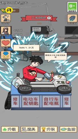 在这个充满乐趣的休闲打工逆袭小游戏中,玩家将体验到从零开始的奋斗历程。游戏的起点是一个简单的摆摊场景,玩家可以选择在桥洞摆摊刷鞋,赚取第一桶金。随着资金的积累,摆摊的项目也会逐渐升级,从最初的鞋子到后来的烧烤,甚至可以通过努力赢取心仪的白富美,最终住上憧憬已久的四合院。这样的设定不仅让人感受到打工的艰辛,也让玩家体验到一步步向上攀登的成就感,充满了励志的色彩。
