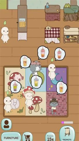 2、可爱的卡通画风和轻松的背景音乐,让玩家在经营店铺的同时,也能享受到愉悦的游戏氛围,仿佛置身于梦幻的奶茶王国。