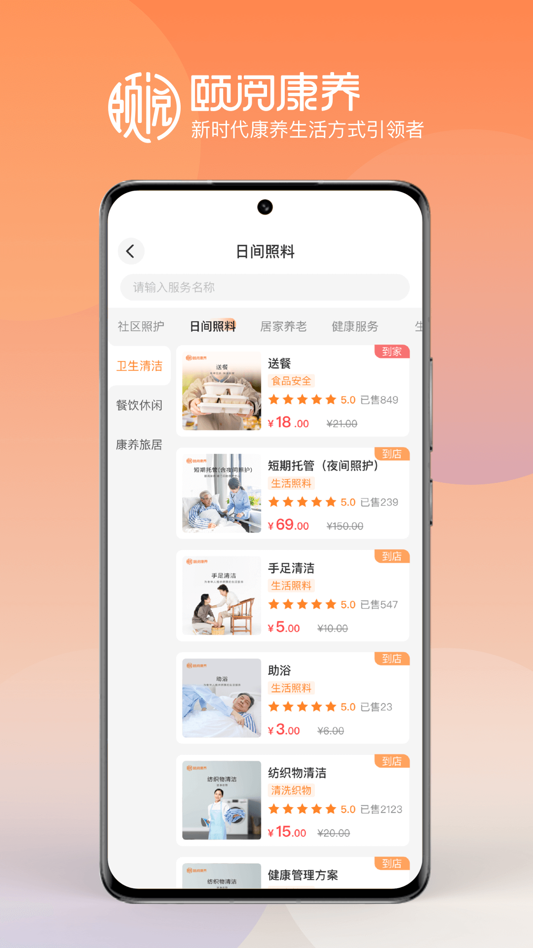 1. 打开颐阅康养应用,进入主界面,您将看到各类养老服务的选项。