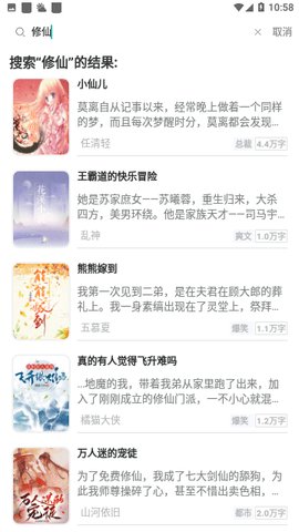 3、搜索结果中会列出相关的书籍,点击你感兴趣的小说封面进入详情页。