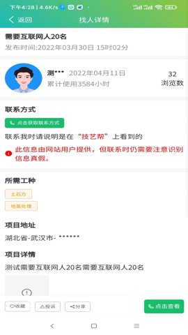 3、技艺帮实时发布招聘信息,提供了企业信息和聊天互动功能,非常方便和省心。