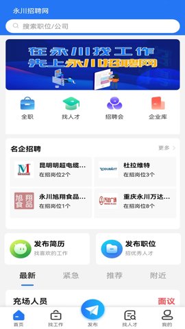 永川招聘网APP为用户提供了一个全面移动化的员工服务平台,随时随地浏览招聘信息和投递简历,真正实现了求职的便利性。