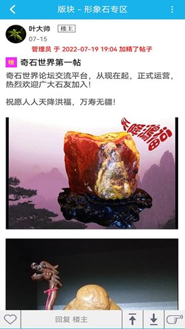 3、奇石爱好者可以随时参与讨论,分享自己的见解,满足不同层次用户的交流需求,促进奇石文化的传播。
