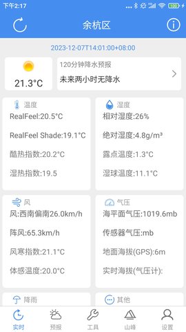 气象计算是一款能够深入解析当前大气状况并量化各类气象要素的移动软件,利用温度、湿度和气压等基础数据推算出露点、湿球温度、空气密度及蒸汽压等专业参数,进而评估天气条件对人体感受的实际影响。工具能够将气象数据转化为可操作的参考信息,例如通过分析温湿度关系来调节室内环境状态,或结合气压读数与地理位置推算实时海拔高度,为日常出行和户外活动提供科学依据。
