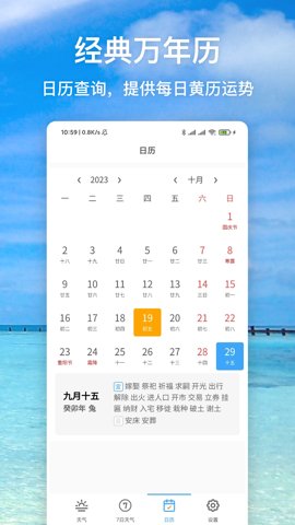 4、内置经典万年日历功能,方便用户查看日期和黄历运势,帮助安排重要日程。